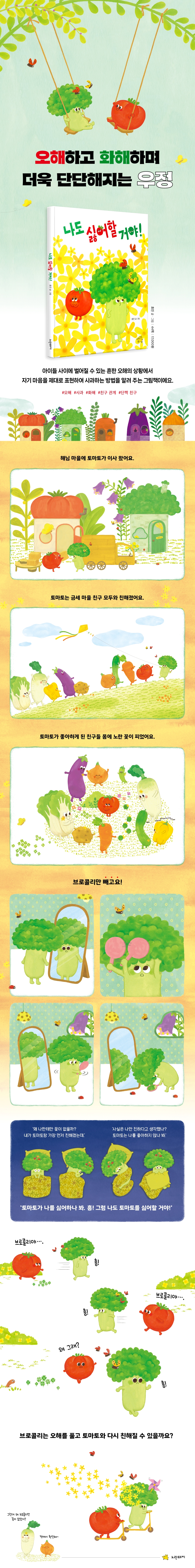 《나도 싫어할 거야!》는 아이들 사이에서 어떻게 ‘오해’가 일어나고, 풀리는지, 그러면서 우정이 얼마나 더 깊어지는지에 대한 이야기를 담은 그림책이다.